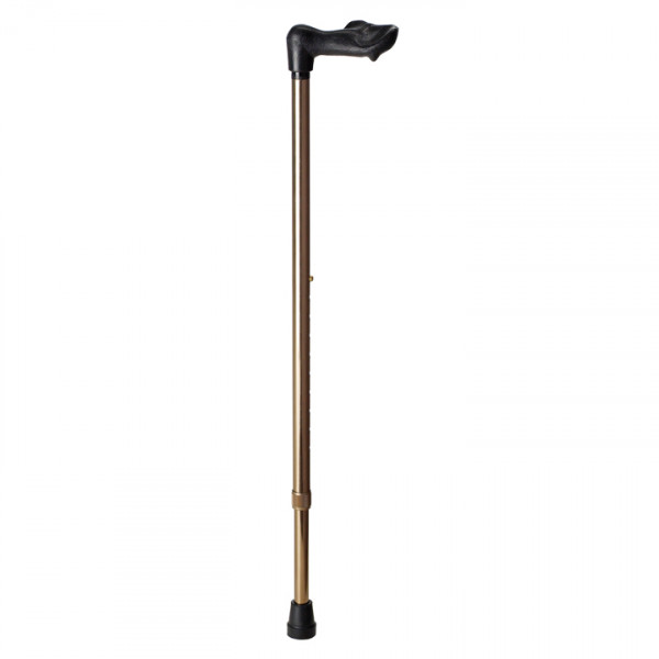 El puño anatómico permite apoyar toda la mano de manera natural y cómoda, aliviando mucho la presión, la tensión y el consiguiente dolor. Altura graduable de 80 cm a 102 cm con ajuste silenciador que impide el molesto ruido que hacen muchos bastones durante la marcha. Disponible para derecha o izquierda: indicar AD415d o AD415i.