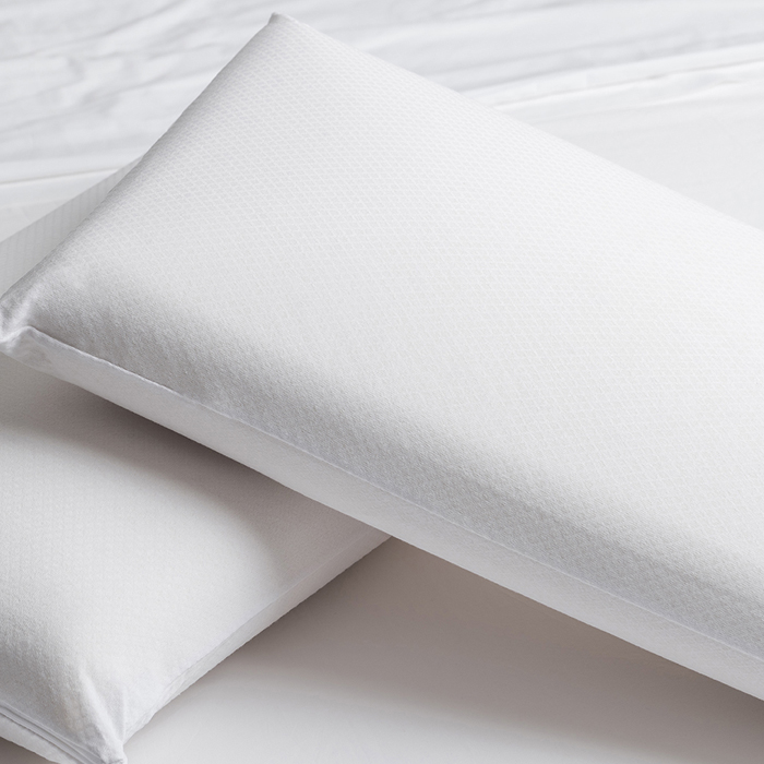 La almohada viscoelástica está confeccionada con un núcleo viscoelástico de alta densidad perforado de firmeza media-baja y doble funda de tejido 100% algodón Su núcleo viscoelástico se adapta perfectamente a la curvatura del cuello proporcionando un descanso reparador. Además, al ser perforado, permite la circulación del aire por el interior de la almohada favoreciendo la transpiración.