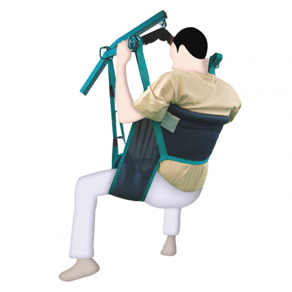 Este es el arnés preferido en las instituciones, especialmente para usarlo en el WC, ya que permite que el paciente se vista y desvista al subir o bajarle al aseo. Tejido de fácil secado.