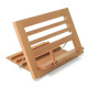 Bonito atril que permite adoptar una postura más cómoda cuando se lee en una mesa o escritorio, también es práctico en la cocina. Es ajustable en inclinación, tiene dos pestañas que sujetan las páginas y se pliega completamente plano para que sea más fácil de guardar y llevar. Medida: 34 x 23 cm.