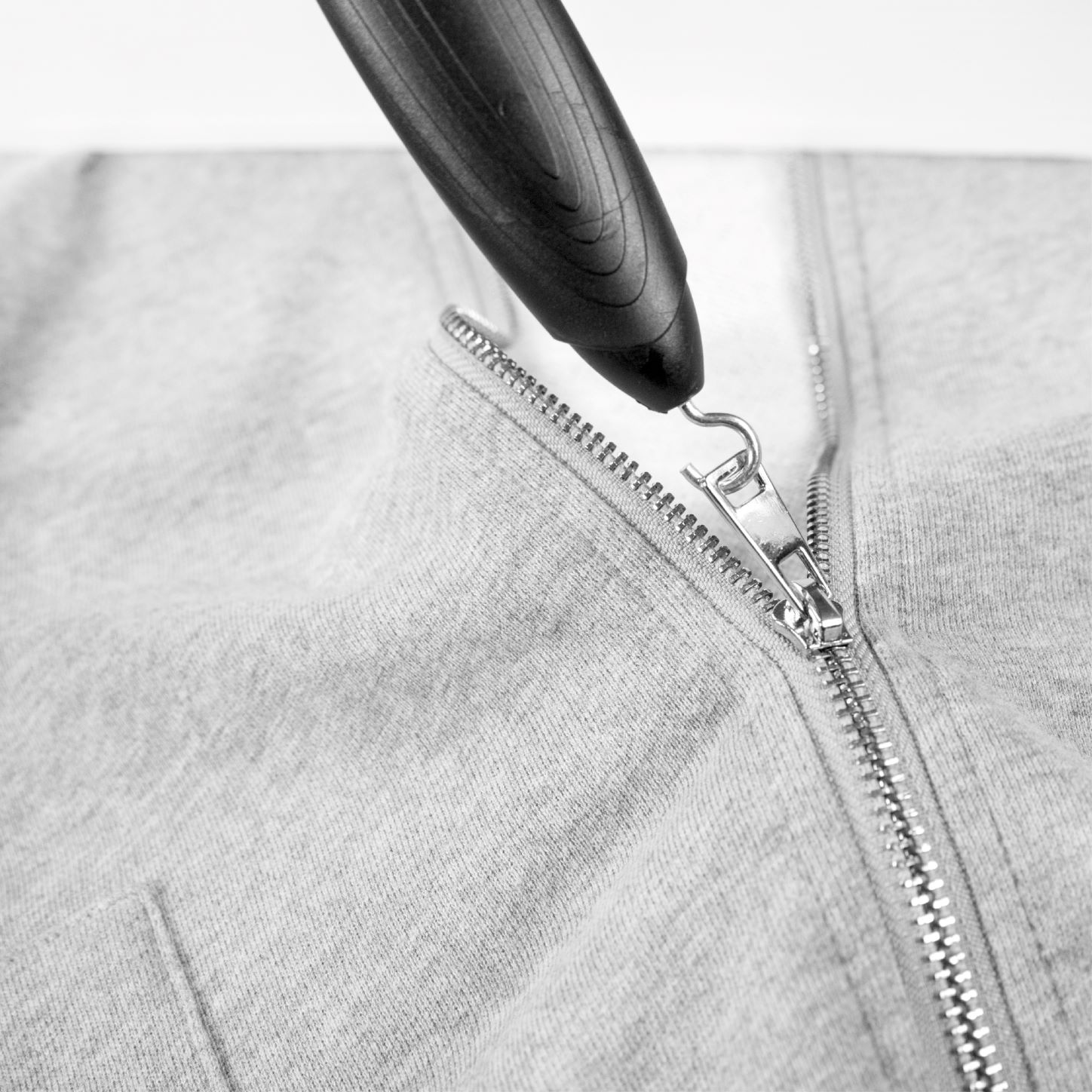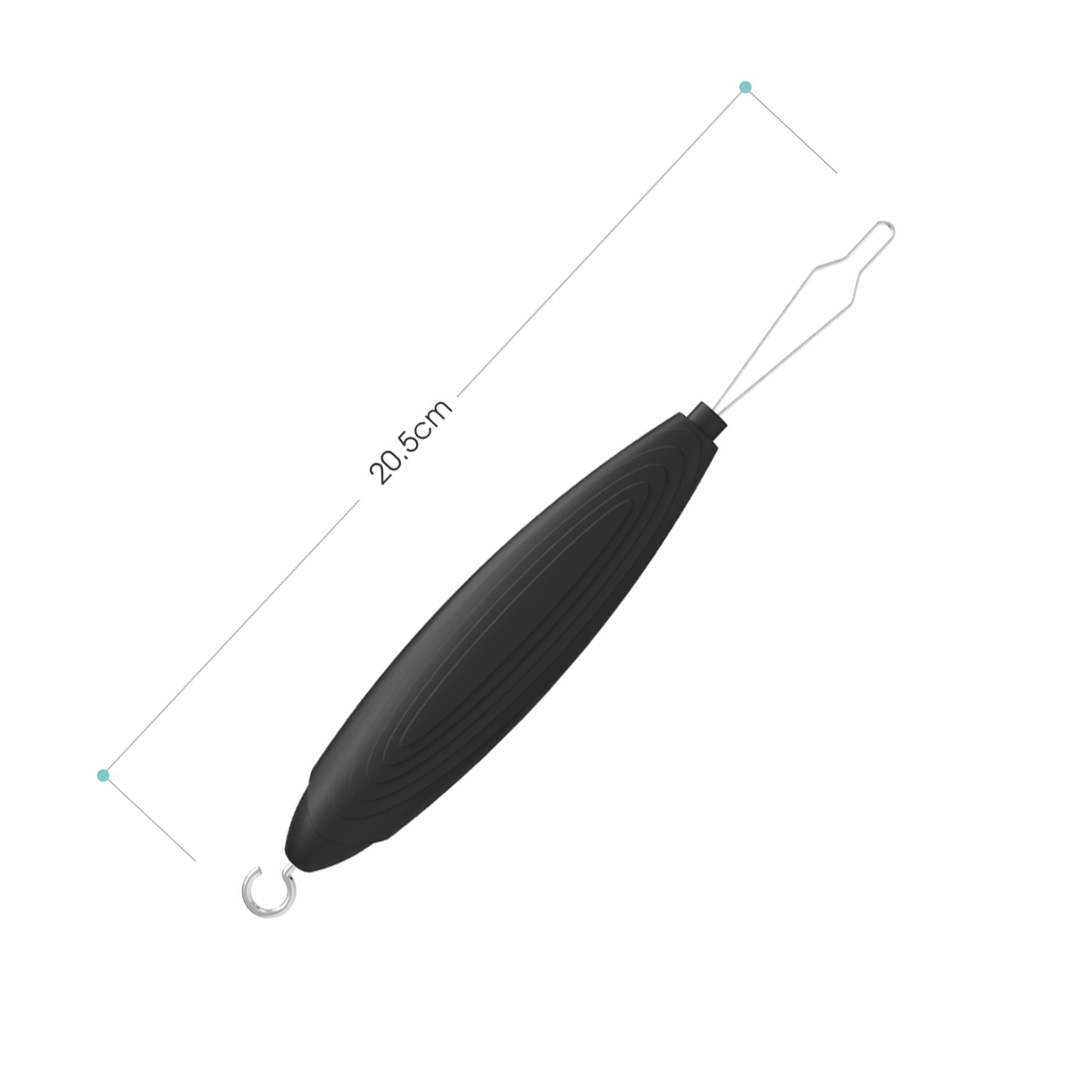 Permite abrocharse con una sola mano. El gancho ayuda también a subir cremalleras. Largo: 20 cm.