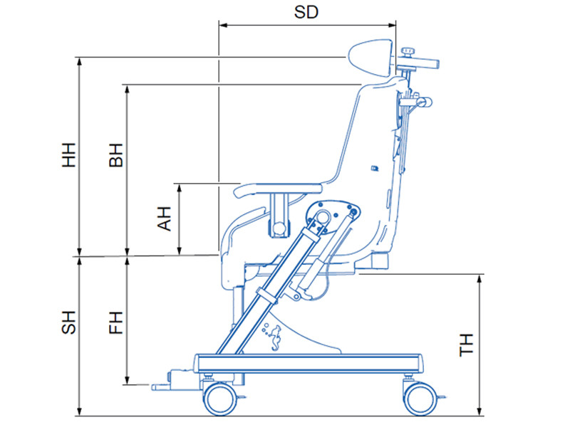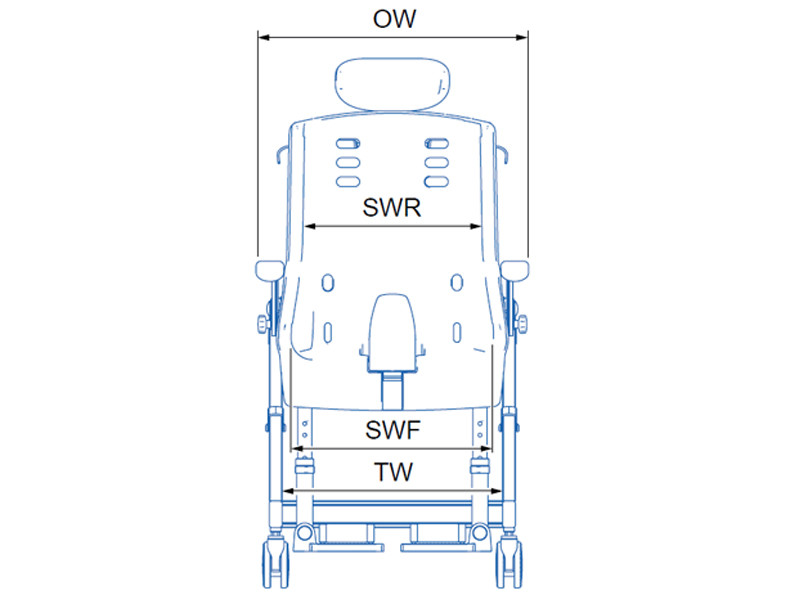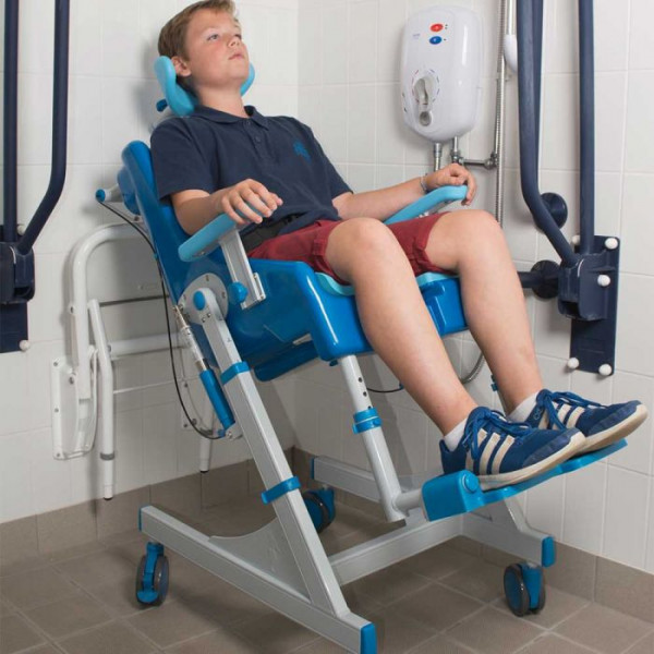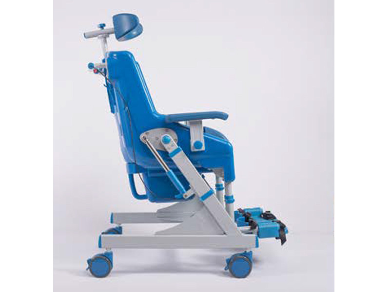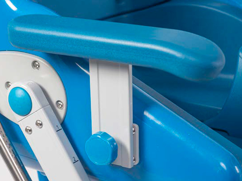 El innovador mecanismo de basculación asistido por pistones de gas permite 40° de basculación. Para bascular el asiento, simplemente presione los botones rojos de las manetas y luego guíe el usuario desde una posición sentada hasta una completamente reclinada para una ducha segura y cómoda.