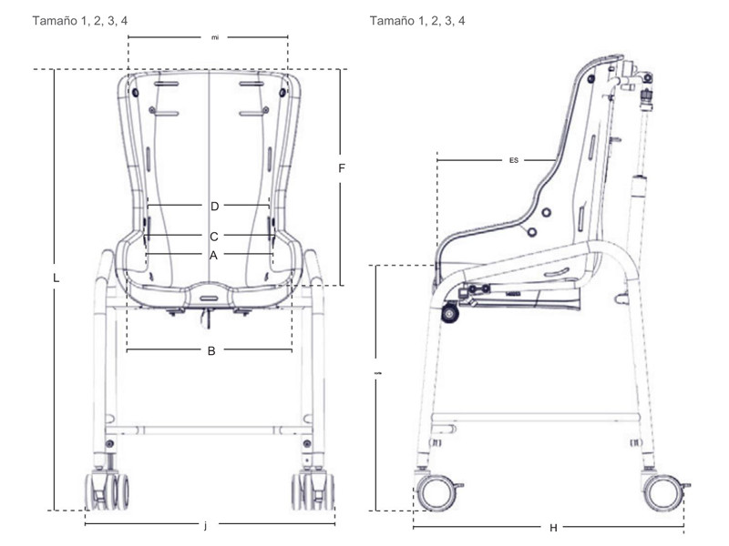 para los cuidadores o el baño, el chasis es regulable en altura.