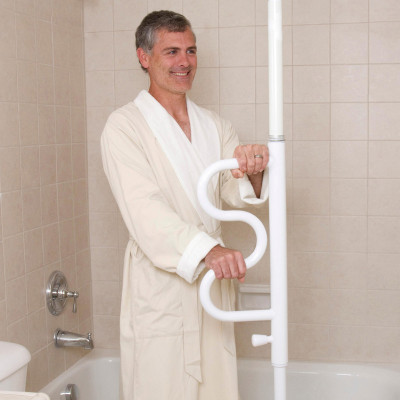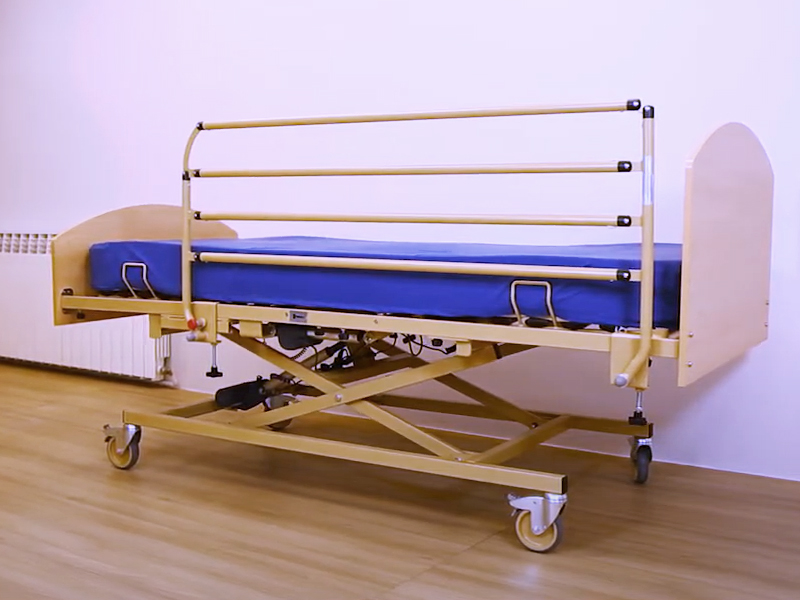 La barandilla abatible es muy práctica, pues permite a la persona que está en la cama acostarse, incorporarse y descender con facilidad. Además, el cuidador puede plegarla para tener mejor acceso, con lo que realiza sus funciones con más soltura.