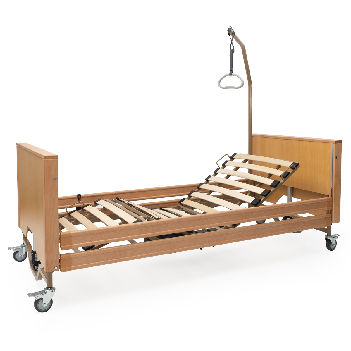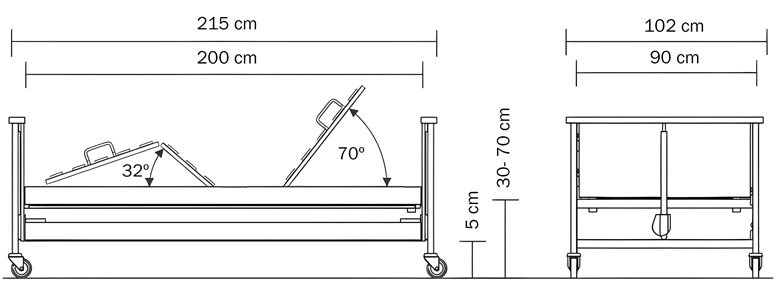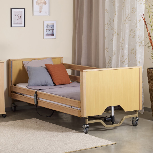 Con tan solo 30 cm de altura, la cama LOW es la solución ideal para un cuidado diferenciado y libre de sujeciones, además de adaptarse perfectamente a personas de menor estatura y usuarios de silla de ruedas. Incluye un somier de lamas de madera de 200 x 90 cm, dividido en 4 planos para ofrecer una mayor comodidad al residente.