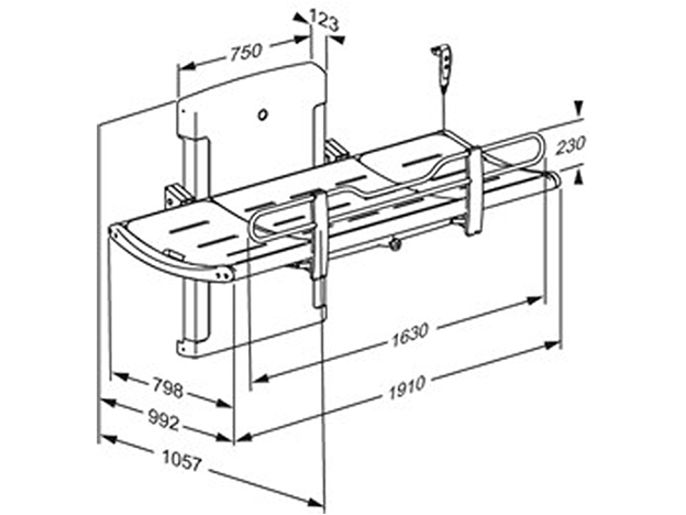 Camilla de ducha SCT 3000, eléctrico, regulable en altura 700 mm; de 300 mm -1000 mm, con control manual con cable.