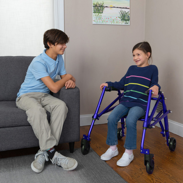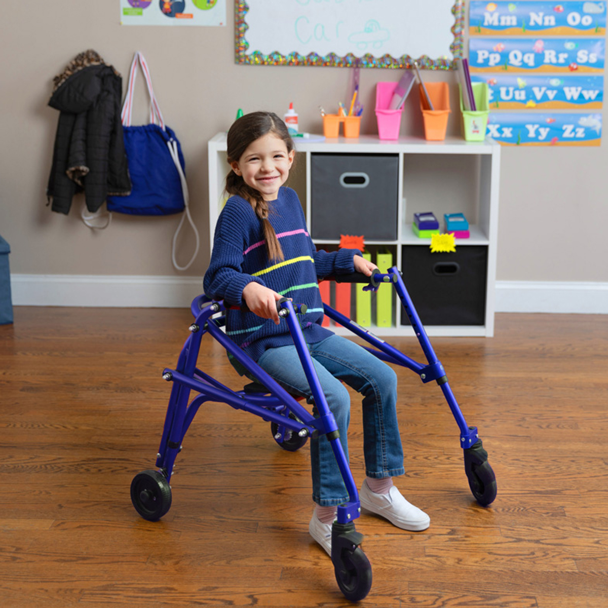 El andador anteroposterior infantil es está diseñado para niños y adultos con alteraciones motrices y/o neurológicas que necesitan apoyo para caminar y mantener una postura erguida. Actúa como soporte, favoreciendo que el usuario mantenga una postura correcta tanto cuando está de pie como cuando camina.