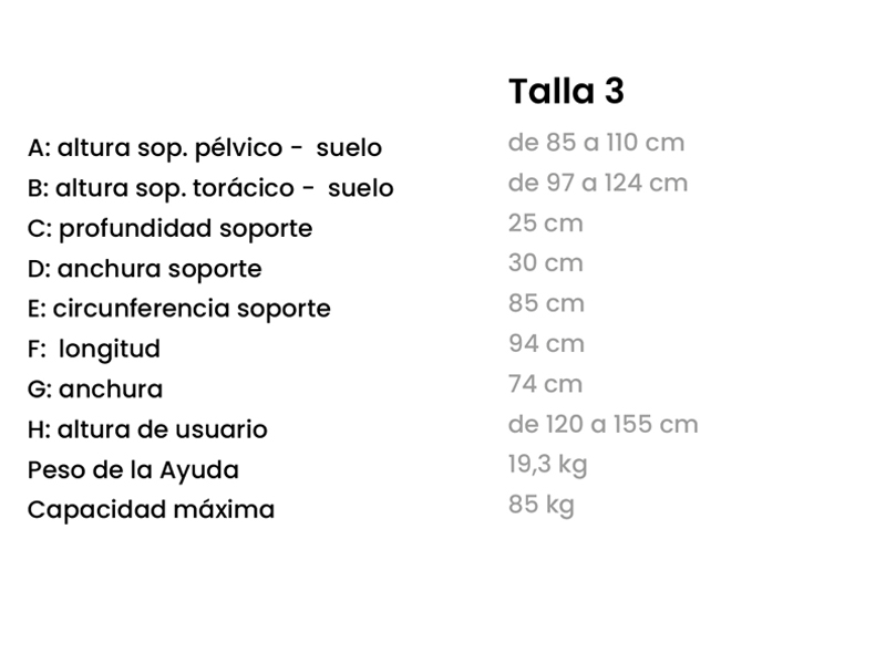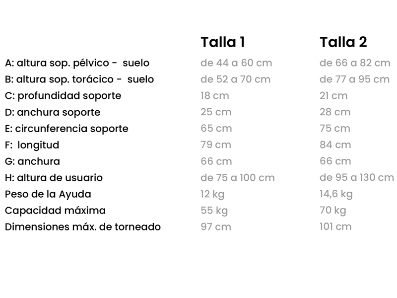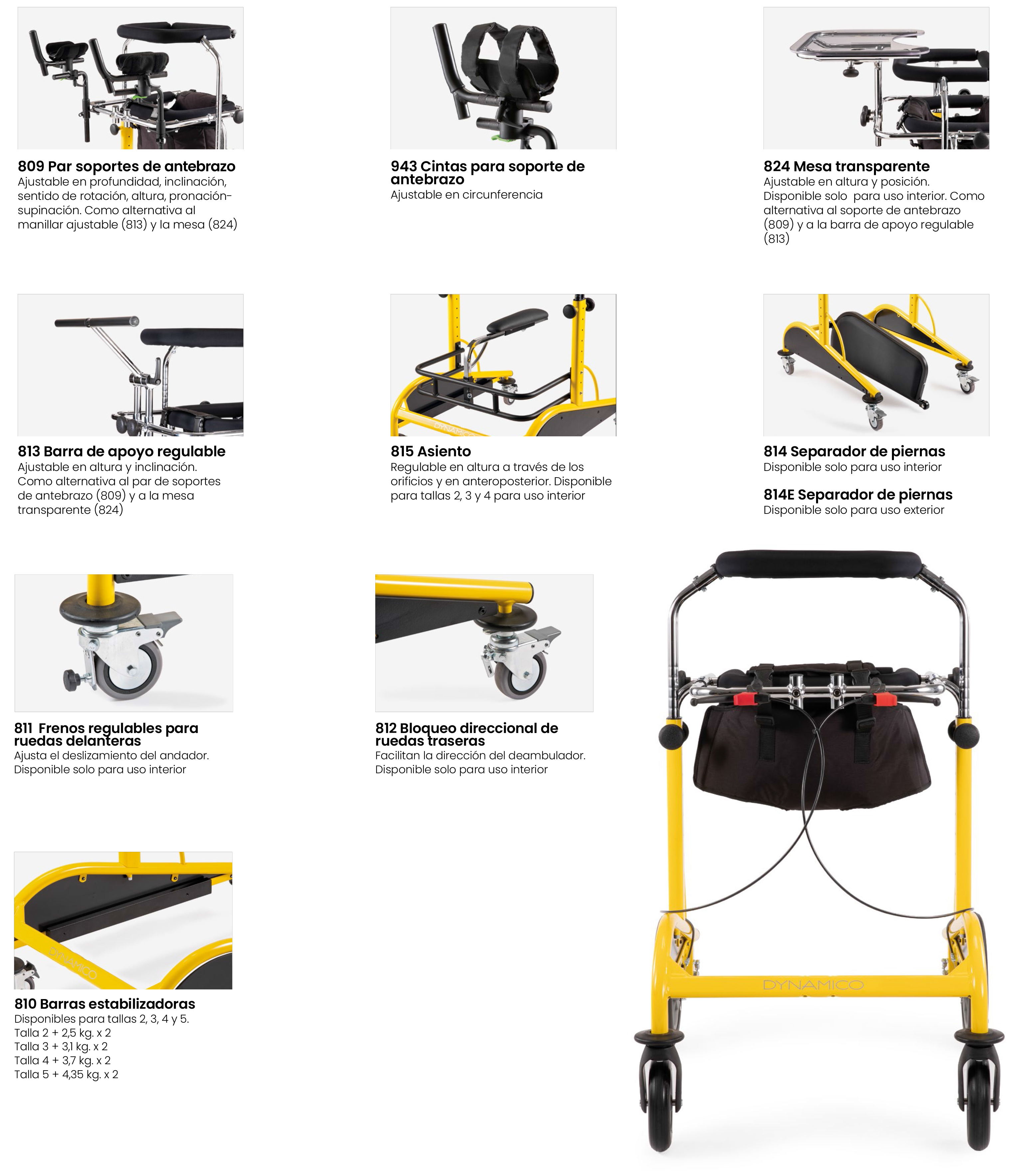 • DYNAMICO exterior: 3 tallas, posibilita el empleo del andador por calles, jardines, etc. sin peldaños ni grandes pendientes.