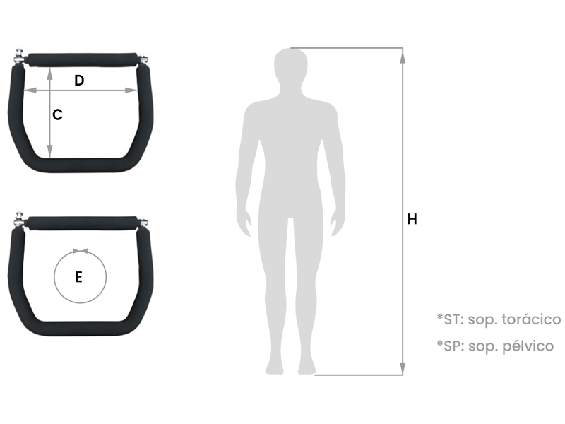 apoyo acolchado para el tronco, ajustable en altura. Se puede quitar para personas con suficiente control del tronco. Permite un fácil acceso gracias a la apertura trasera.