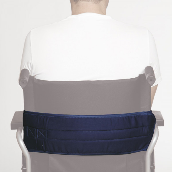 Cinturones de colocación sencilla y rápida. Una banda acolchada sujeta al paciente por la cintura y se abrocha por detrás de la silla con una hebilla de plástico de accionamiento rápido y con velcro. Permiten libertad de movimientos en las extremidades y en el tórax. Indicado para personas con tendencia a deslizarse hacia delante en la silla y evitar caídas.