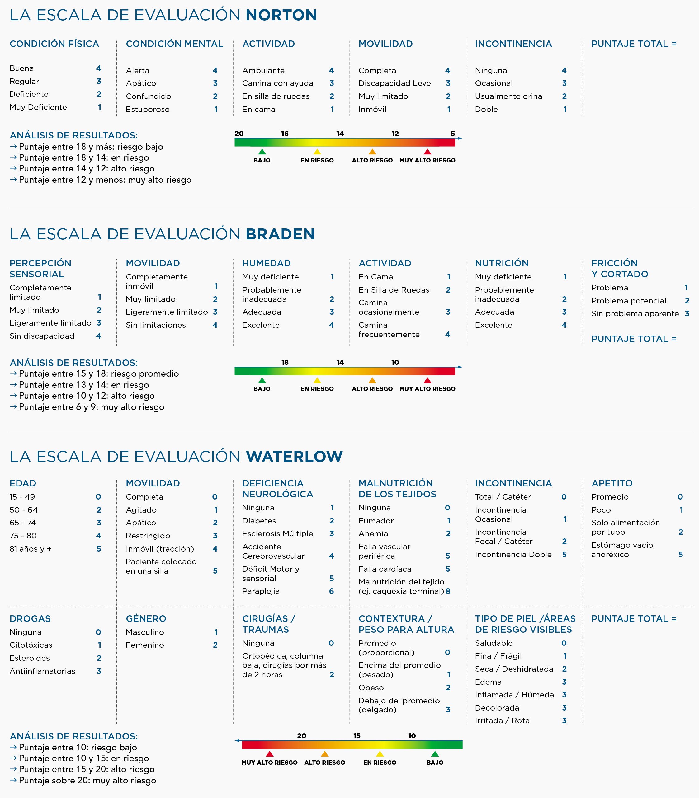Las escalas de la evaluación (Braden, Norton, Waterlow) son