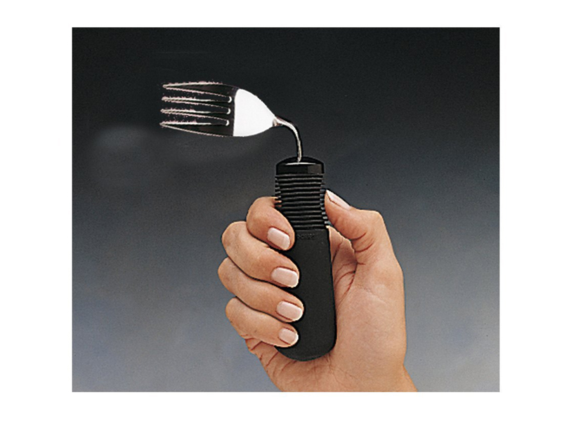 El tenedor flexible está diseñado para que los usuarios coman de forma independiente. El mango es ancho y suave. Proporciona un agarre cómodo y el tenedor se puede doblar al ángulo preferido hasta 90°