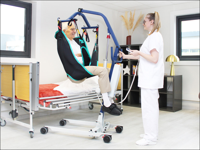 Es una grúa de grandes prestaciones, como las de gran tamaño, pero con dimensiones reducidas. Soporta un peso máximo de 160 kg y gracias al diseño del mástil aumenta el espacio entre la persona y el motor de la grúa, a la vez que permite un acceso cómodo al paciente cuando hay que elevarlo de la cama.