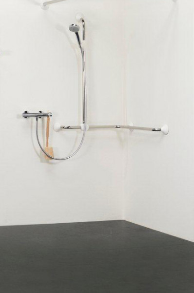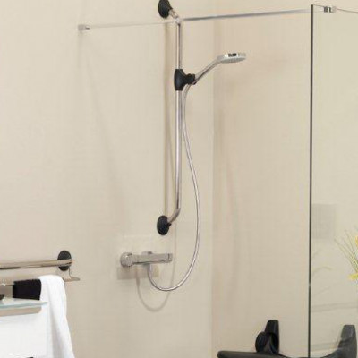 Ingenioso soporte para teléfono de ducha diseñado a partir de la observación de que las personas que no alcanzan el teléfono en la ducha suelen adoptar posturas incómodas para intentar alcanzarlo y a menudo acaban sujetándose de la manguera. Todo esto puede degenerar en una pérdida del equilibrio en un ambiente resbaladizo. Simplemente estirando de la manguera, este soporte se desliza suavemente por todo el recorrido de la barra hasta la altura deseada.