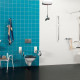 6- Barras abatibles linido. Permiten agarrarlas desde delante, de la manera que muchas personas realizan transferencias frontales y no siempre laterales. El tubo metálico se inserta totalmente en el bloque de plástico, así no hay peligro de atraparse las manos, tal y como ocurre con las barras que apoyan directamente sobre la pared, LI2603. Ver en detalle►