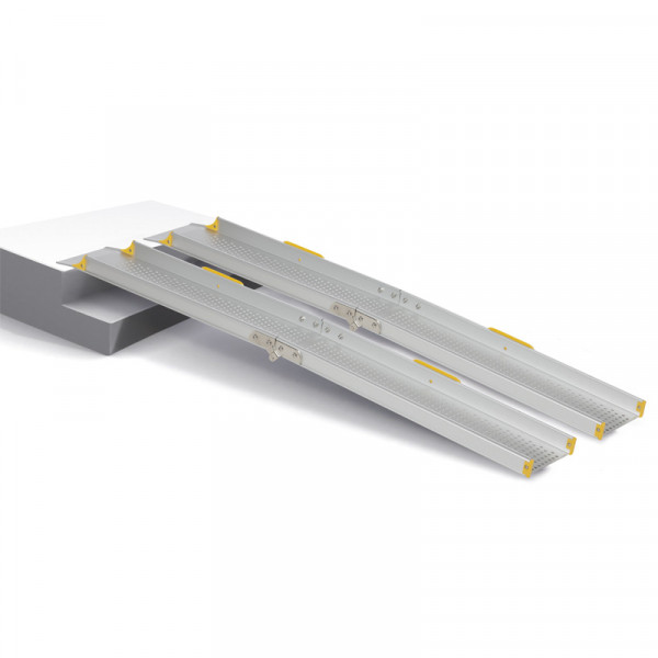 Fabricadas en aluminio, muy ligeras a la vez que robustas y resistentes. No requieren mantenimiento. Recomendadas cuando se utilizan en el mismo lugar o con el mismo desnivel, al ser de longitud fija. También sirven para salvar umbrales. Una vez plegadas son fáciles de transportar y de guardar incluso en un maletero.