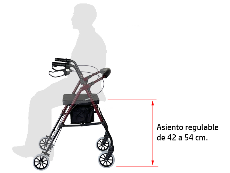 El asiento es regulable en altura de 42 a 54 cm. independientemente de la regulación de las empuñaduras.