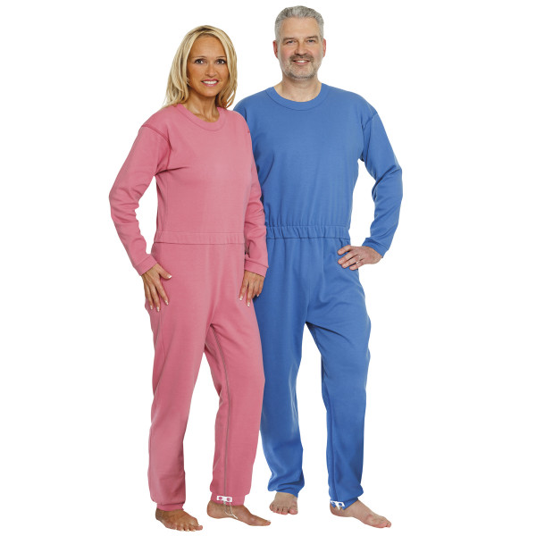Pijamas de fácil acceso a los productos para incontinencia, que facilita la labor del cuidador. Con cremallera en las piernas, que facilita el cambio de pañales sin desvestirse.