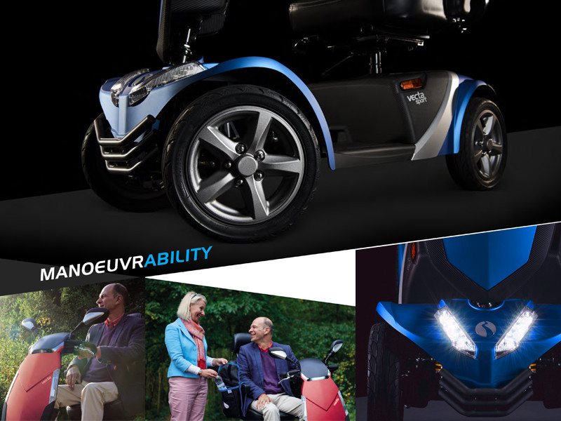 El motor de gran eficiencia y alta torsión junto con el transmisor de alta tracción Max Grip™ asegura que el Vecta Sport llega donde otros scooters no podrían.