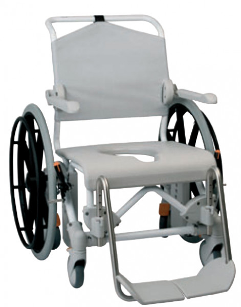 Los reposapiés son graduables en altura y los brazos abatibles para permitir la transferencia lateral.
