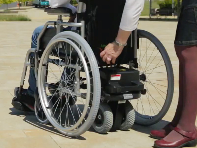 Evita el esfuerzo que implica tener que empujar una silla de ruedas y facilita la subida en las pendientes, rampas y superficies irregulares. Su exclusivo acoplamiento con un solo clic facilita su instalación y desmontado en segundos en la silla de ruedas.