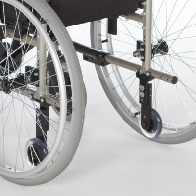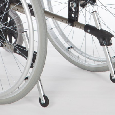 Ruedas: Delanteras de poliuretano (PU) antipinchazos de 200 mm Ø. Traseras de PU antipinchazos de 600 mm Ø. Frenos con sistema de retroceso automático, de alta calidad que requieren poco esfuerzo