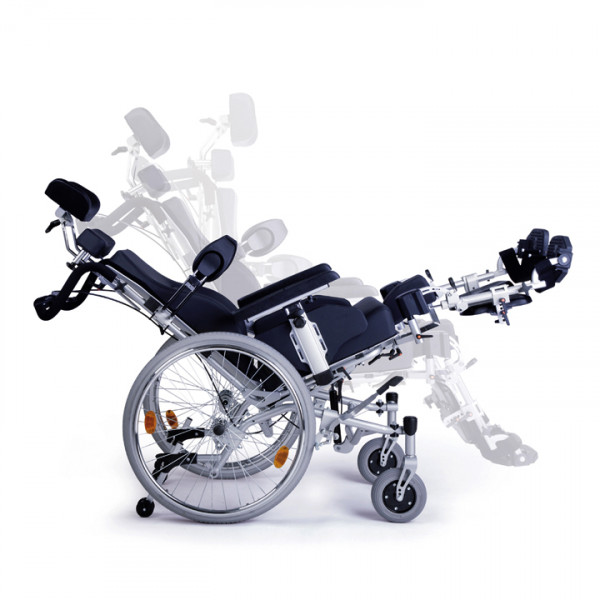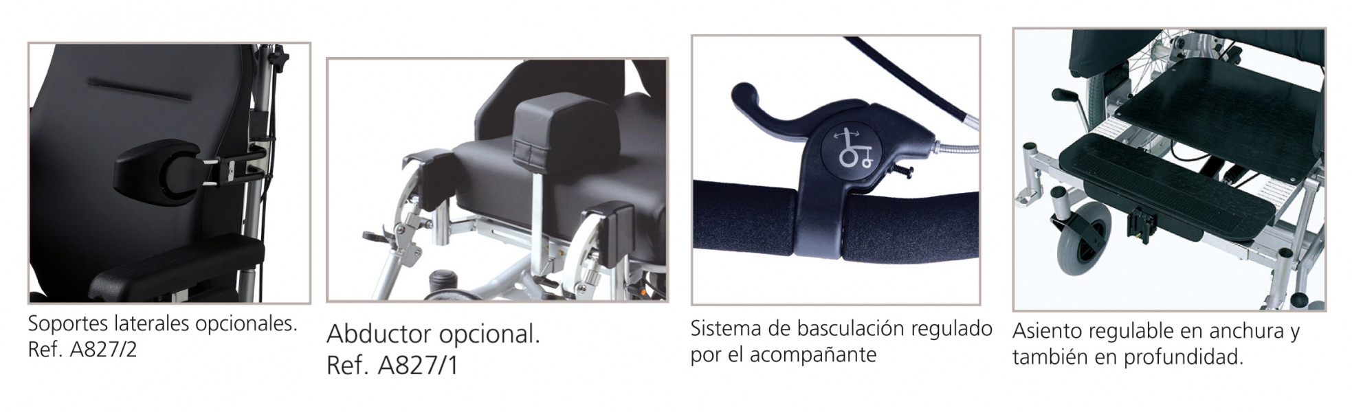 De similares características que la SILLA BASCULANTE DE RELAX SERENA aunque en este caso destinada a usuarios que no pueden autopropulsarse en sus desplazamientos sino que precisan de asistencia.