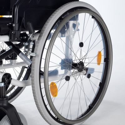 • Ruedas de 24” antipinchazos de poliuretano con “quick release”.
