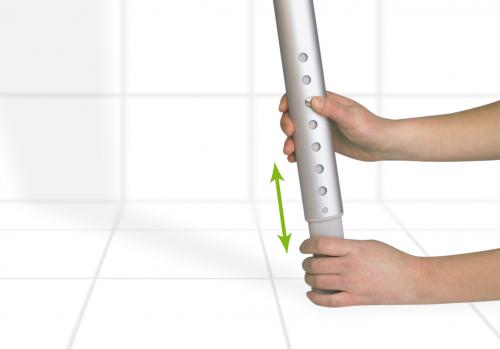 Sistema simple de regulación de altura del taburete, con un simple pulsador integrado en cada una de las patas.