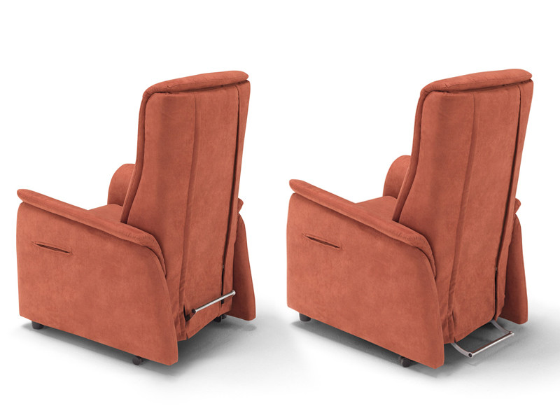 Gala tiene dos motores de serie, de manera que se puede accionar el reposapiernas o el respaldo de manera independiente para adoptar cualquier posición a su conveniencia. Elevar solo las piernas para descansarlas es siempre se agradable y permite una variedad de actividades relajantes, tales como leer, practicar algún hobby o ver la TV desde una cómoda postura.