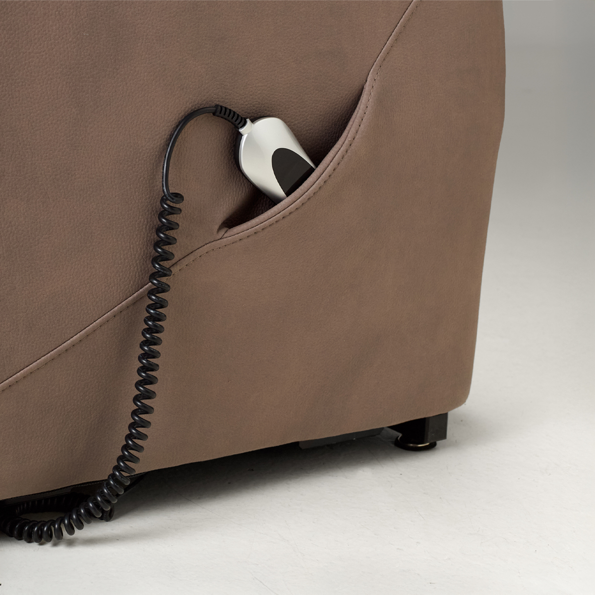 Sillón relax eléctrico tapizado en un tejido de poliéster. Lleva sistema Power Lift, un mecanismo articulable que levanta verticalmente el sillón para permitir a la persona a levantarse con mayor facilidad. Incorpora un motor que hace que el movimiento del respaldo y del resposapiés articule de manera conjunta. Se acciona con un mando que incluye USB para conectar otros dispositivos.