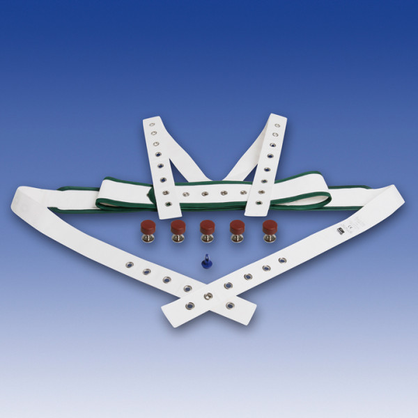 Sistema de sujeción rápida de la parte superior del cuerpo. Los tirantes se pueden utilizar solamente en combinación con el cinturón abdominal para impedir que el paciente se deslice hacia arriba. Se suministra con 5 botones de cierre magnéticos y 1 llave magnética.