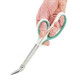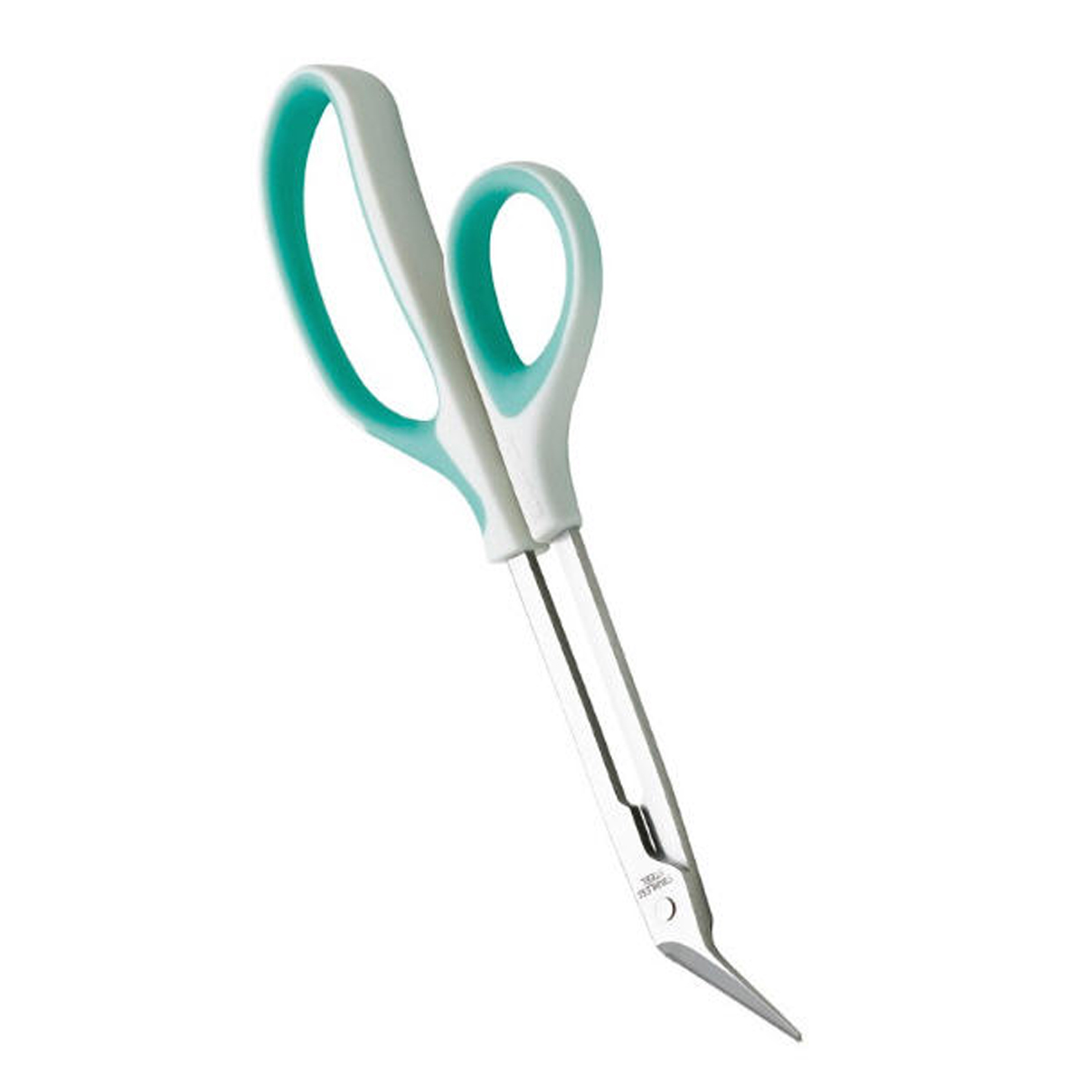 Con grandes asas que permiten utilizar toda la mano para controlar mejor la tijera. La tijera es extralarga para los que tienen dificultad en agacharse. Las cuchillas curvadas de acero inoxidable ofrecen una buena posición para cortar. La cuchilla superior está ligeramente dentada para que no se resbale en la uña.