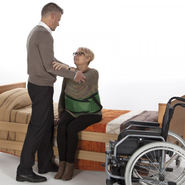 Diseñado para movilizar personas con seguridad, es una ayuda imprescindible para facilitar el trabajo del cuidador. Da seguridad y confianza al paciente y permite trabajar en condiciones óptimas al cuidador a la vez que le evita lesiones de espalda. Disponible en dos tallas de cintura. Dos colores diferencian la talla: VERDE para la L y NARANJA para la M.