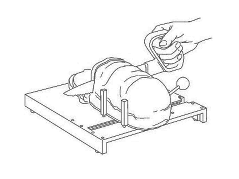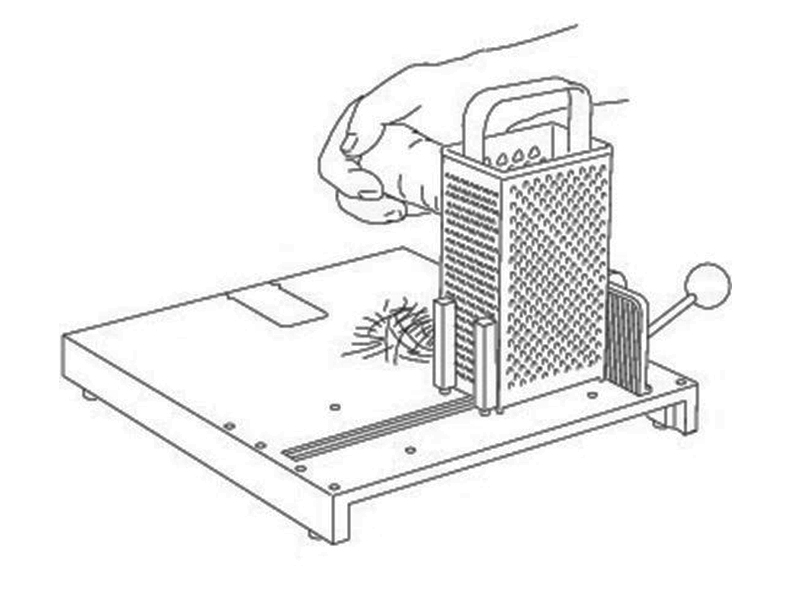 Las mordazas sostienen un bol, un rallador o un trozo de comida en su lugar. También hay unos pequeños pinchos para sujetar trozos de comida. Este se puede quitar y colocar con las púas hacia abajo cuando se quiera obtener una superficie plana.