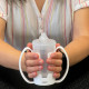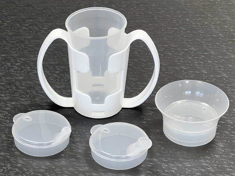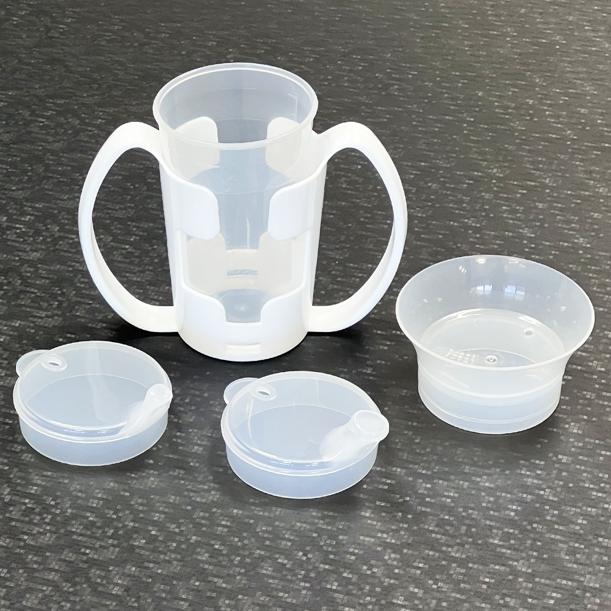 El vaso con dos asas mejora la autonomía de personas con problemas de movilidad a la hora de beber. Así, permite que éstas puedan beber solas, aun estando recostadas, sin riesgo de derrames y atragantamientos, gracias a una tetina perforada y a dos asas ergonómicas para un cómodo agarre.