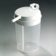 Transparente y con marcas de capacidad. No se derrama el contenido, aunque el vaso se vuelque.
